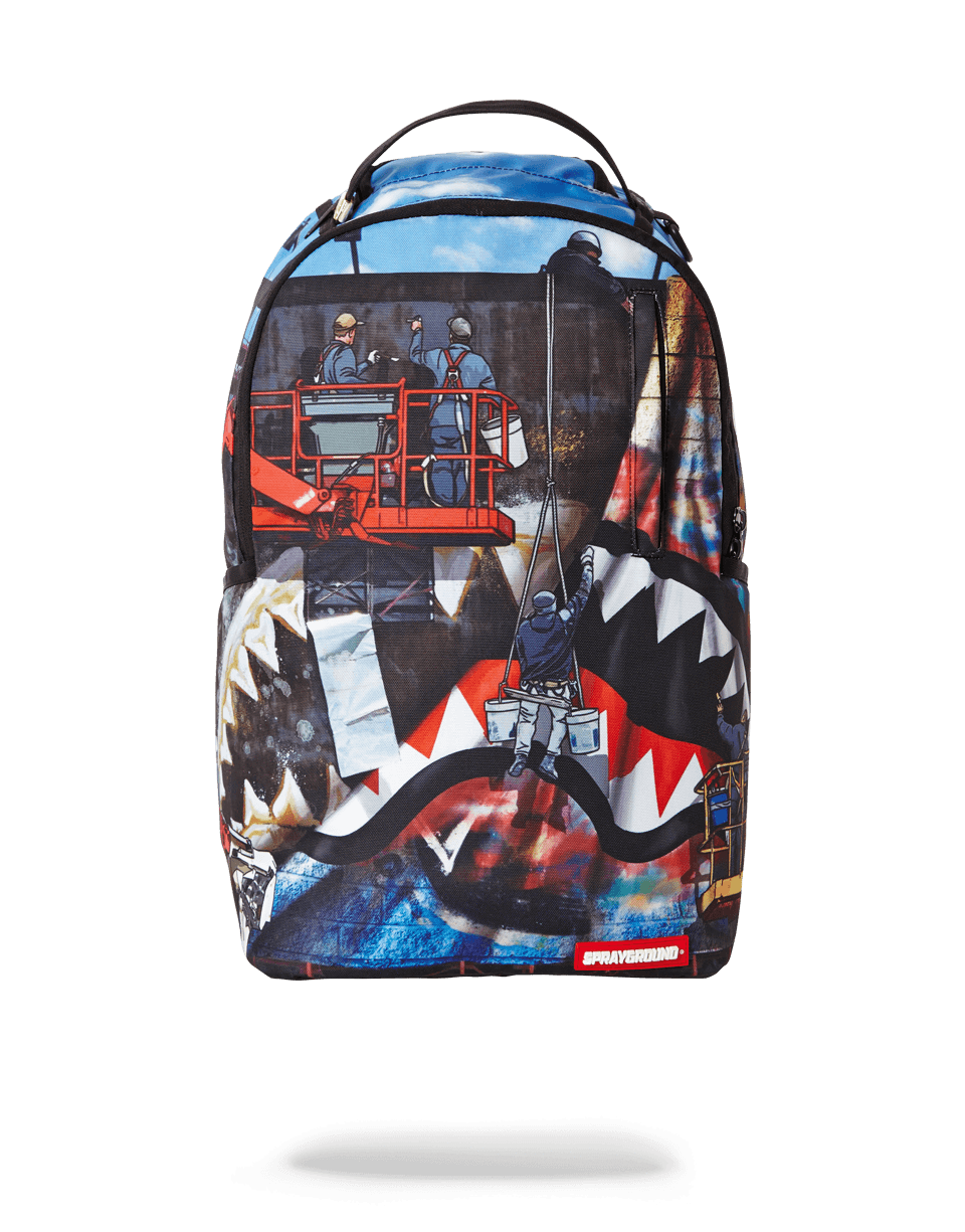 ExteriorDimensions: 18' x 6' x 11.5' • Front zipper pocket • Side pockets • Zippered Stash pocket • Ergonomic mesh back padding • Adjustable Straps for custom sizing • Nylon Zippers with Metal Hardware • Metal 'Sprayground Authentic' badge • Slide through back sleeve connects to Carry on luggage to free your hands